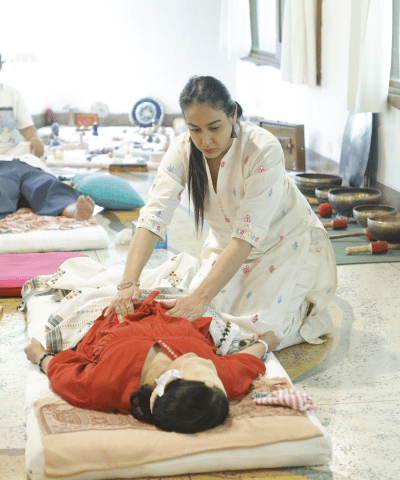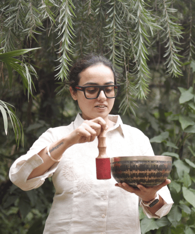 A compassionate and intuitive guide, Sonakshi weaves psychology, breathwork, sound healing, expressive arts, and intuitive touch to create deeply transformative experiences.